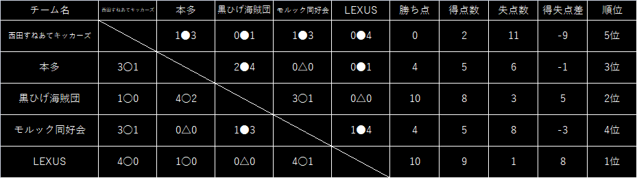 top_slider partner PARTNERパートナー result RESULT 11/29 sat. 鶴見予選① 大会結果 優勝 : LEXUS 2位 : 黒ひげ海賊団 MVP : LEXUSのフィールドプレーヤー result RESULT鶴見予選① 星取表 team TEAM鶴見予選出場チーム 西田すねあてキッカーズ 本多 黒ひげ海賊団 モルック同好会 LEXUS photo PHOTO大会風景 partner PARTNERパートナー