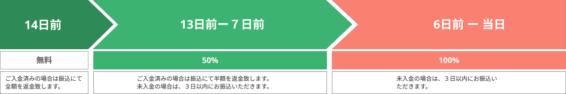 • その際もキャンセル規定に基づき、キャンセル料が発生致します。