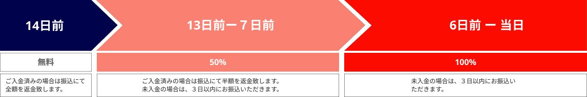 - ご予約確定時(お申込みいただいた時点)より、キャンセル規定の対象となります。