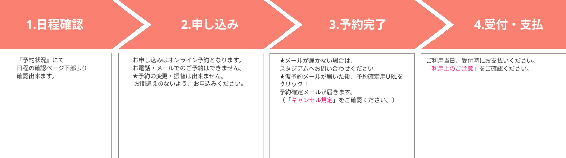 - ご予約内容をご明記の上、メールにてご連絡をお願い致します。