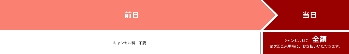 その際もキャンセル規定に基づき、キャンセル料が発生致します。 - ご予約確定時(お申込みいただいた時点)より、キャンセル規定の対象となります。