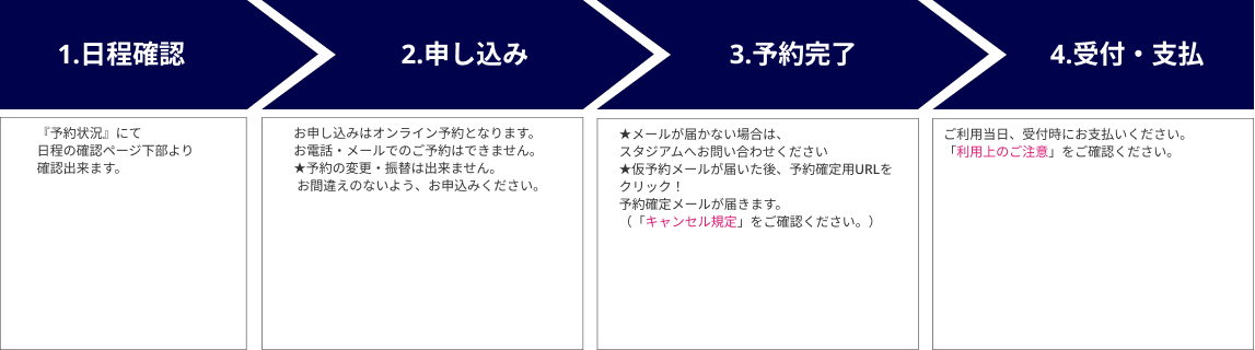 - ご予約内容をご明記の上、メールにてご連絡をお願い致します。